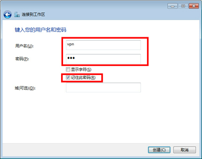如果用户名和密码提示屏出现,在用户名和密码字段都输入"vpn" (3 个字母)。你应该在 "记住密码" 处打勾。